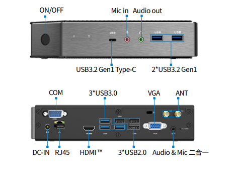 云终端Y-BOX P3主板上配备了 1个 M.2 插槽,支持两种尺寸(2242和2280)的NVMe协议PCIe固态硬盘,支持PCIE3.0、PCIE4.0。机身共配置了3个USB3.2 Gen2接口和3 个 USB2.0接口,以及1个 USB3.2 Gen1 Type-C,2个USB3.2 Gen1接口,满足用户更多应用拓展。