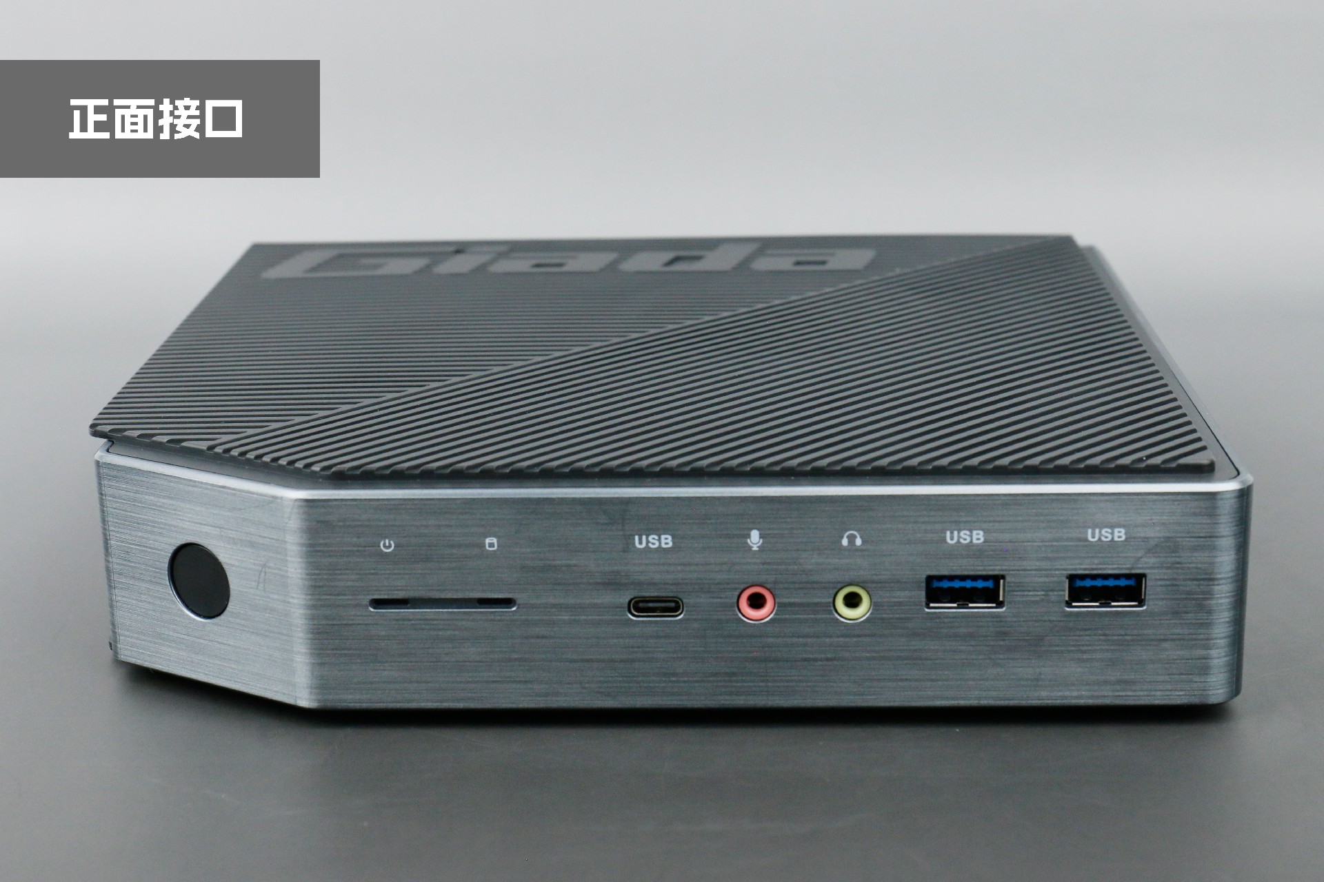 除了外观为全新设计,接口更是诚意满满。中国·世俱杯桌面云终端Y-BOX P3提供丰富多样的扩展接口,正面最左边为开机键,旁边为电源与硬盘读写状态LED灯,1个 USB3.2 Gen1 Type-C2接口,以及一个Mic-in和 Audio out音频接口,满足即插即用的设备需求。最右边有2个USB3.2 Gen1接口。