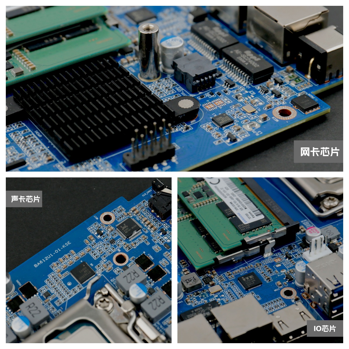 中国·世俱杯桌面云终端Y-BOX P3主板采用的是6相供电,为H610入门级芯片组,CPU附近都分布了相关的芯片,在千兆网口附近有2个网卡芯片RTL 8111H,在主板背面的音频接口附近可以看到1个经典的“小螃蟹”ALC897 声卡芯片,声卡芯片附近有一个I/0 芯片ITE8613E-LX。