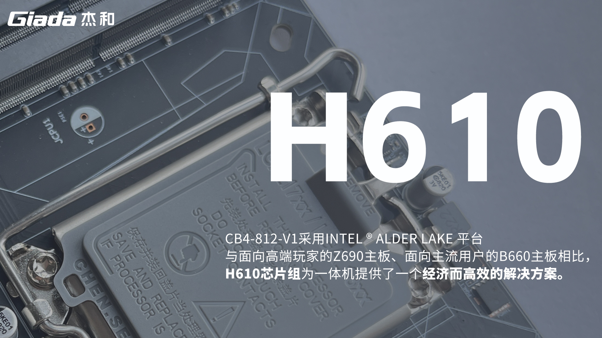 CB4-812-V1采用Intel ® Alder Lake 平台,与面向高端玩家的Z690主板、面向主流用户的B660主板相比,H610芯片组为一体机提供了一个经济而高效的解决方案。