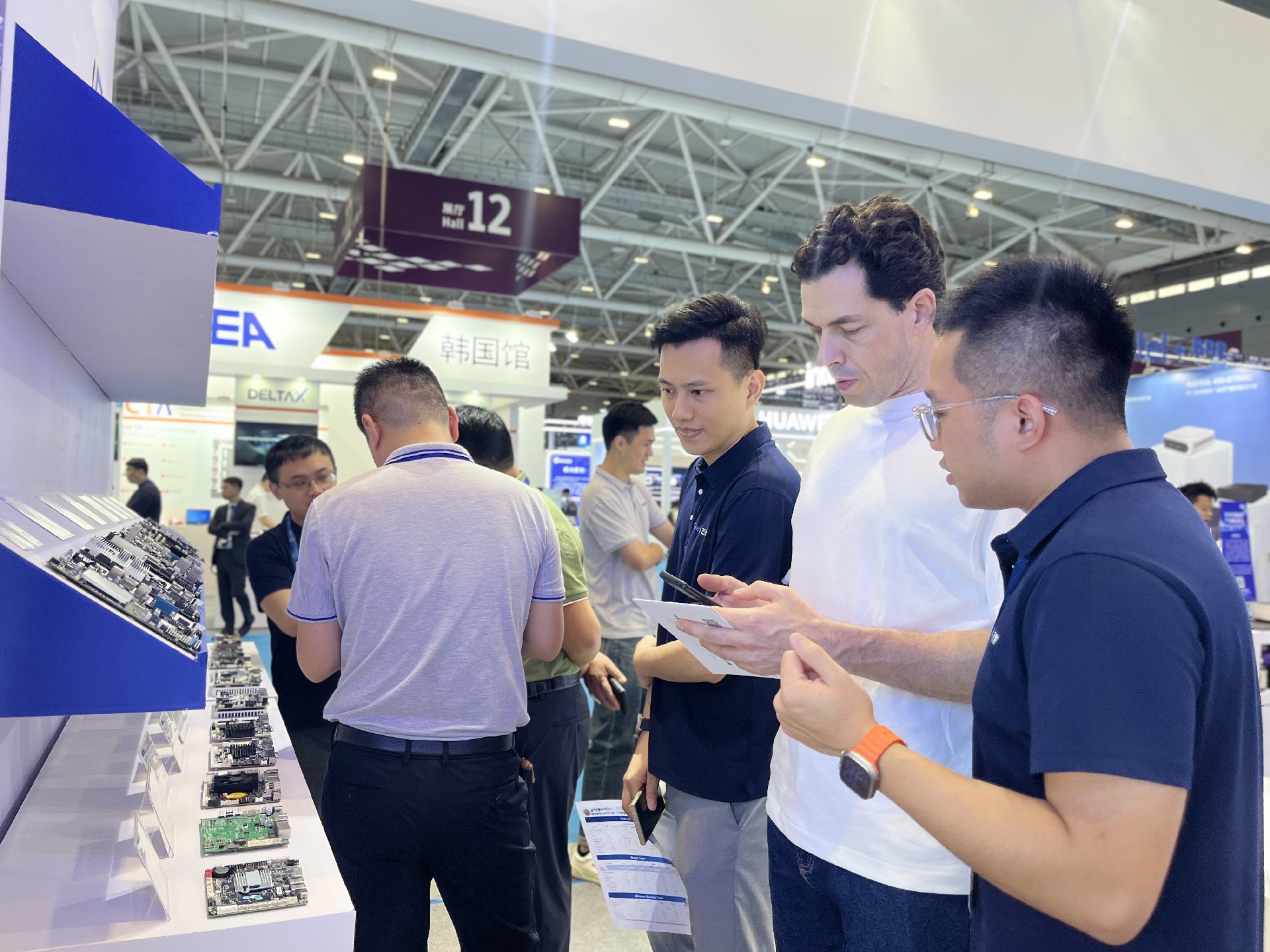 此次中国·世俱杯科技带来了30余款智能硬件产品,应用领域涵盖工业制造、办公、校园、户外商显等场景。并首次对外展示工作站WA814,以及CB4-X12-V0、CB4-812-V1等商用一体机主板,还有工业计算机整机、工业计算机主板等产品方案,凭借强大的产品性能和广泛的应用领域吸引大批观众驻足,展位现场人流涌动,热度爆棚!
