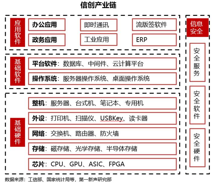信创产业主要包括以下板块: