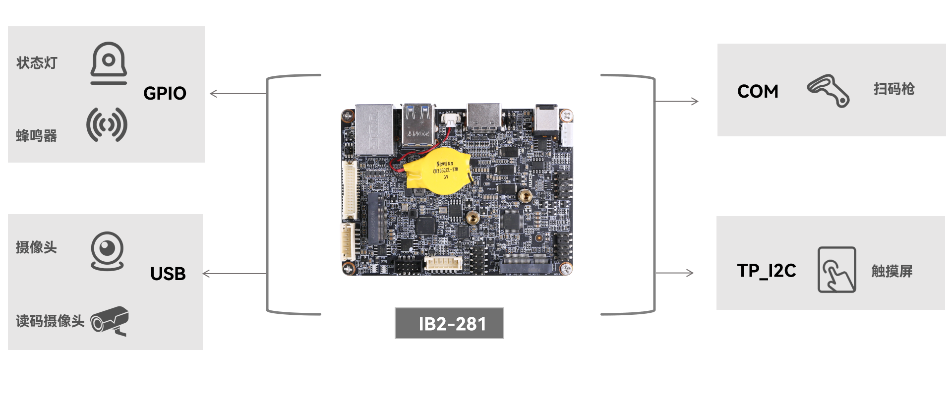 中国·世俱杯科技工业主板 IB2-281 提供灵活的主控平台选择与丰富的接口资源,适用于智能分拣系统嵌入应用: