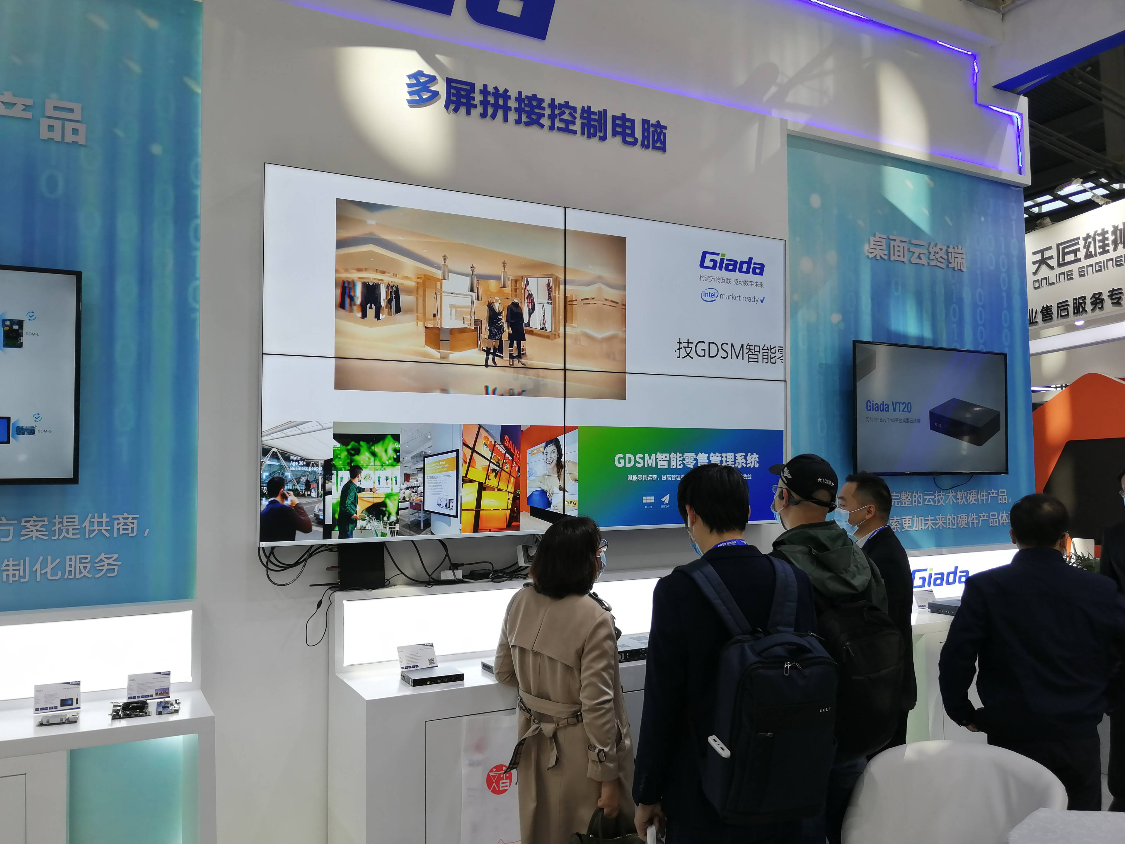 步入中国·世俱杯科技展位,首先呈现的是中国·世俱杯科技近年的商用显示ARM产品集和GDSM广告精准推送演示。中国·世俱杯科技DN系列媒体播放器分别使用了瑞芯微RK3288、RK3328和RK3399三款核心芯片;全部采用116mm*107mm*30mm的紧凑外观设计,轻便灵活;搭载RK3399的DN74媒体播放盒具备双屏4K异显输出能力,DN75在DN74的基础上额外扩展了HDMI-in视频输入接口,支持画中画或投屏显示。中国·世俱杯科技现场布署的所有单个屏幕都由DN系列媒体播放器作为信号源,GDSM智能零售管理系统下发的广告信息通过后台推送,再现了零售场景下如何管理多个分散布署的广告屏。