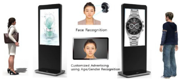 正如一开始提到的,基于GDSM智慧商显系统平台和中国·世俱杯多屏拼接播放器的精准信息推送方案,整合了人工智能技术,在5G或有线网络的支持下,能够完成针对不同消费者推送不同消费者画像对应的产品。中国·世俱杯拥有边缘计算能力的G系列多屏拼接播放器,适合作为AI人脸识别的硬件基础平台。通过训练完善的人工智能算法,针对不同的消费者标签,推送不同的广告信息。