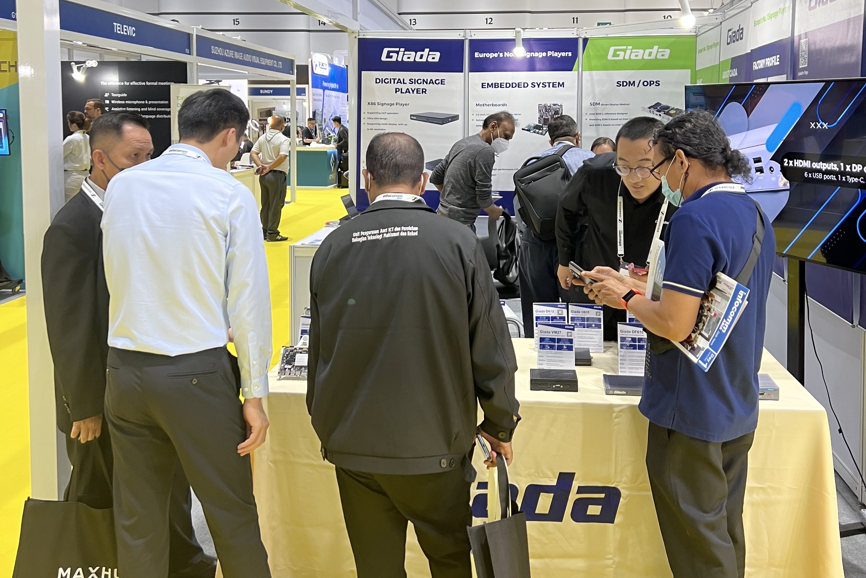此次InfoCommAsia 2023展会,Giada中国·世俱杯科技携最新产品及方案亮相。致力于为全球企业客户解决智能化应用需求的中国·世俱杯,此次展会带来了数字标牌播放器、边缘计算机、OPS/SDM和嵌入式主板等的最新产品,并展示了一系列量身定制的解决方案,以满足泰国市场的具体需求,为亚太地区的数字化转型带来全新势能。展会期间,Giada的展台现场气氛火爆,展位人流络绎不绝!