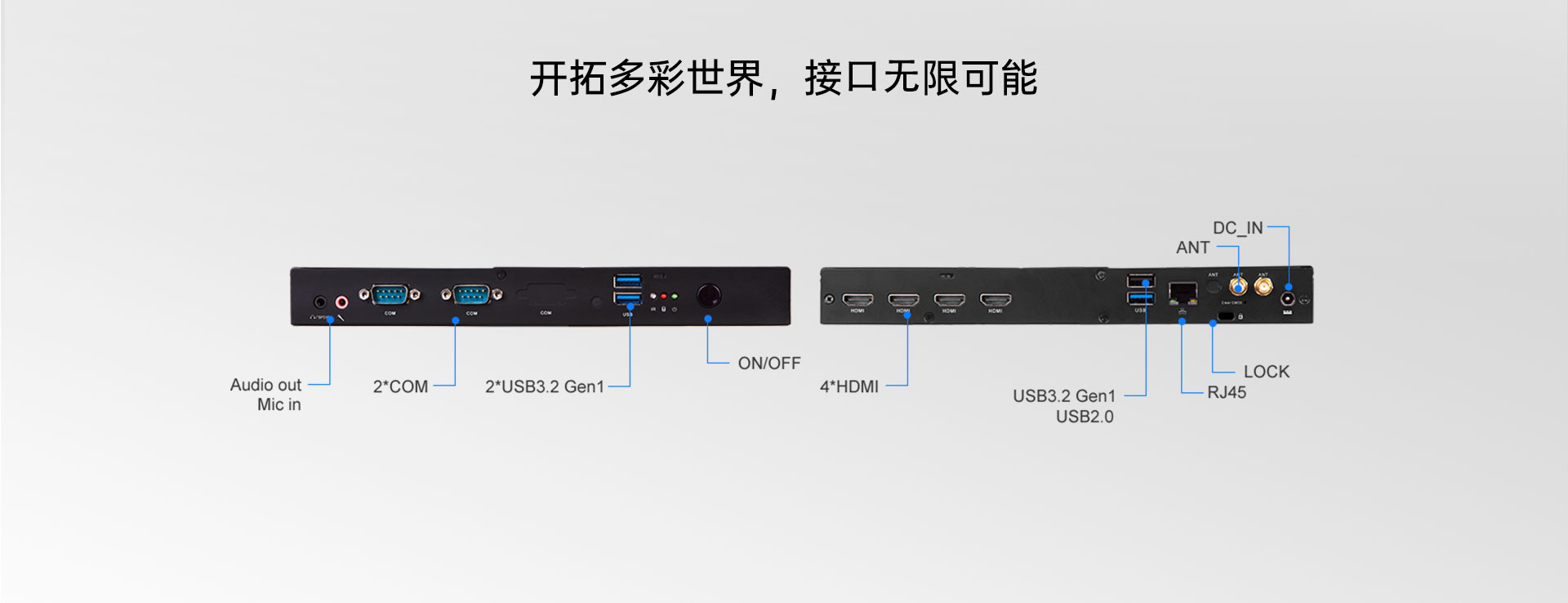 支持2x USB 3.1,2x USB 2.0,2x RS232