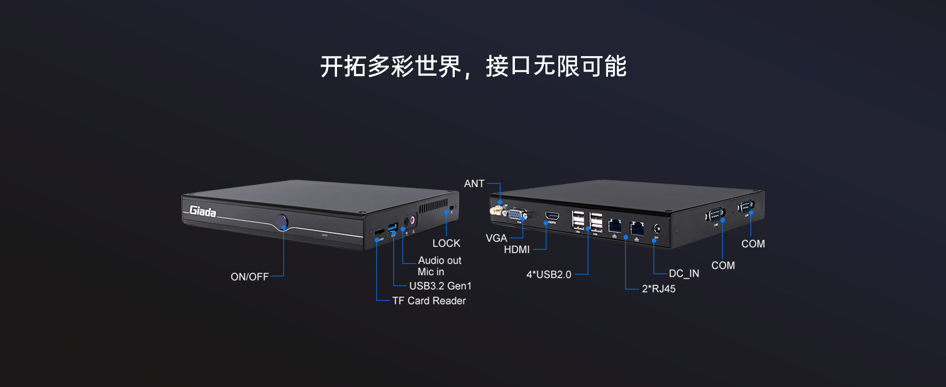 支持1x USB 3.0,4x USB 2.0,1x RS232