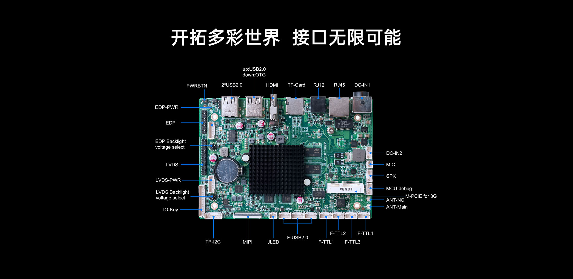 | 外部I/O | 接口 | 1 x HDMITM(Max. 4096 x 2160@60Hz) 1 x USB2.0(OTG),1 x USB2.0 1 x RJ45,1 x RJ12钱箱接口 1 x TF卡槽1 x 24V DC-IN航空座子接头 1 x Mini-PCIe for 3G/4G ,1 x SIM卡槽,板载Wi-Fi/BT 1 x 2-IN-1 Headset (AUDIO-OUT & MIC-IN) |